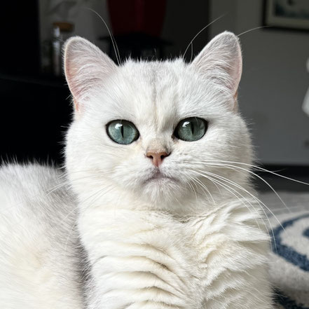 J'aime grimper sur les genoux de mon humaine pour pleins de câlins et de bisous, jouer avec mes copains chats et courir derrière les plumeaux.
